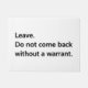 Do not come back without a warrant. The Fourth Amendment: The right of the people to be secure in their persons, houses, papers, and effects, against unreasonable searches and seizures, shall not be violated, and no Warrants shall issue, but upon probable cause, supported by Oath or affirmation, and particularly describing the place to be searched, and the persons or things to be seized. #FourthAmendment #4thAmendment #SearchAndSeizure #ProbableCause