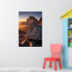 Epic mountain landscape with dramatic peaks and golden sunlight. Rock in the foreground with an inspirational message about environmental preservation. Perfect for nature lovers, trekking and mountaineering. A work that combines natural beauty with ecological awareness, ideal for decoration, posters and outdoor motivation.