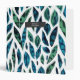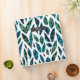 Watercolor inspired blue and green leaves pattern. Personalize name inside gray rectangle at front.