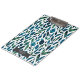 Watercolor inspired blue and green leaves pattern. Personalize name inside gray rectangle at front.