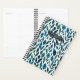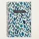 Watercolor inspired blue and green leaves pattern. Personalize name inside gray rectangle at front.