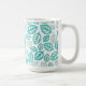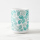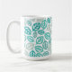 Ceramic coffee mug shown with a pretty teal/aqua color leaves print. Customize this item or buy as is. Stock Image