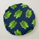 This Round Pillow features an original pattern by ZoeSPEAK, made from Zoe’s original photograph of leaves from the tropics. The plant, Senna alata, is often called the Emperor’s candlestick. The delicate green leaf clusters are scattered across a deep blue background, with a mood from the islands.