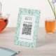 Trendy digital menu with QR code on watercolor leaves pattern.