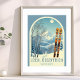 Poster from a wonderful ski resort holiday in the beautiful mountains of Lech, Österreich! This small poster features an arch with a stunning blue-grey mountain landscape and retro ski boards in an orange tribal pattern in the foreground. The rest is in a lovely light blue tone with the location lettering in a modern font. The design is a lovely combination of retro and modern, and I hope you enjoy it!