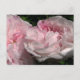 Leda is an antique Damask rose dating from the early 1800's. The petals are many and vary in color from blossom to blossom. Creamy pink and often tinged with darker pink, she is also called the Autumn Damask or Painted Damask. This postcard features two blushing pink scented flowers.