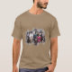 My 11 yo wore adult XL (5’7” 165#). The 8yo is small framed. She wore adult small and tied it in the back. Grandma wore adult large with long sleeve shirt underneath. Tall girl adult medium. Dark haired male adult large. Good quality dark Heather gray, Gildan brand shirt. -it was next up from basic choice and cost about $20 per shirt. Not too thick or thin. Washed and dried well, no major shrinkage. Not see-through. Can wear a bra under it fine. Screen print is just as shown and well done, front and back.