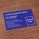 Blue business card with left aligned text that you can customize by uploading your business logo, typing your business name, your name, your title, address, phone number, e-mail and website or social media page. Business card for your customers or clients to easily find your business address and contact information. Customizable card that you can use to build brand name awareness. Please check the appearance of the front and back sides after uploading logo and typing text. If the appearance is pleasing to you, you can place your order now. If you need to resize or reposition the logo and text, please adjust in the design tool. You can also change the background color, font color and font style in the design tool.