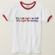 The product was as advertised. The message is succinct and is an eye-catcher. This shirt gets a heap of feedback from onlookers. Most ask you to stand still while they finish reading the definition. They then either give you the thumbs-up or nod any walk away. Either way, its a real conversation starter and so far, no one has disagreed enough with the print to verbalize. The material is fairly light, but the print is stable enough to withstand washes and some activity. A fair deal. Readable and durable.