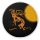 Add a touch of the southwest to cabinets or furniture with a distinctive left facing Kokopelli with the moon at it's back over a black background. Kokopelli sketches and figurines are commonly seen in the southwestern United States. Kokopelli is a fertility deity revered by some Southwestern United States Native American cultures. Kokopelli also represents the spirit of music. Click "Customize" to add text in a typeface style, size, and color you prefer.