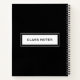 Modern left handed notebook features a minimal design with class notes or subject presented in a black and white frame. Simple, stylish, elegant, and minimalist design that you can personalize with your name in simple classic typography lettering. The spiral is on the right for left-handed convenience.