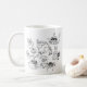 Give fair warning to the people seated across the table that ideas in your head are getting busy like, well, a pair of rabbits. Show the "respectable" parents to the outside world, while their trouble-making offspring dare you to write what you really imagine. Image on the outward-facing side: a dark and white rabbit sitting together; Motto: "Caution: The Plot Bunnies are Brooding." And on the drinker's side: a collage of nine "Bunny Monster" drawings, including a bunny-spider, bunny-snake, bunny-dragon, and bunny-unicorn.