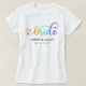 Cute bride tee for a lesbian bride with a cute heart-adorned script filled with rainbow colors. Add the brides' names and wedding date.