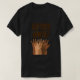 My 11 yo wore adult XL (5’7” 165#). The 8yo is small framed. She wore adult small and tied it in the back. Grandma wore adult large with long sleeve shirt underneath. Tall girl adult medium. Dark haired male adult large. Good quality dark Heather gray, Gildan brand shirt. -it was next up from basic choice and cost about $20 per shirt. Not too thick or thin. Washed and dried well, no major shrinkage. Not see-through. Can wear a bra under it fine. Screen print is just as shown and well done, front and back.