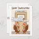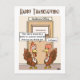 A holiday card with a funny cartoon related to Thanksgiving. The background, image and text can be personalized. Original artwork by DBcartoons.
