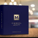 This simple yet stylish binder features a modern design with a brushed metallic gold monogram emblem on a classic navy blue background. Personalize with your name or custom text of your choice using the fields provided. This binder is perfect for financial legacy planning, funeral and estate planning, family emergency documents, and more. With its sleek and modern design, this binder is not only functional but also aesthetically pleasing.