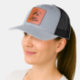 Custom Leather Patch Hat, Sytle: Adult Retro Trucker Cap, Color: Heather / Black, Shape: Circle
