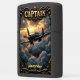 This magnificent metal lighter features a dark green, vintage warplane with a powerful propeller, soaring through sculpted clouds during a warm sunset. The clouds are tinged with gold and pink light, giving the scene a heroic, legendary atmosphere. The central image is framed by a gilded bronze-and-black ornate border, adding to its classic look. The lighter is personalized with the name "Alexander" positioned below the bold, golden title "CAPTAIN". This spectacular, personalized gift is perfect for a pilot, military collector, or anyone who commands with skill and appreciates the glorious history of aviation.