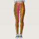 Leggings in multicolored stripes with faux gold stars. The colors are gold, green, orange, and hot pink.