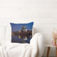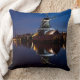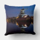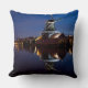 Photo throw pillow cushion with the windmill 'Salamander' with reflection in the water of the Vliet river with lights on at the beginning of the night in the city of Leidschendam in the Netherlands.