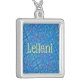 Leilani girl name blue fantasy stars background silver plated necklace