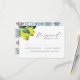 Enhance the anticipation of your special day with our charming reply enclosure card, thoughtfully designed to complement our Italian wedding stationery set. Each card offers guests a seamless way to provide their response information, all set against a delightful top border of watercolor lemons. The reverse side unveils a captivating Amalfi tile pattern in soothing shades of blue and rust, embodying both rustic charm and elegant sophistication. Ideal for destination weddings or any celebration seeking a touch of Italian elegance. Discover the full suite of matching wedding stationery at www.zazzle.com/dotellabelle, where every detail weaves together to create your perfect wedding story.