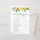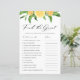 Find the guests. Mingle and chat with the guests to find the answer to the questions. | Add these fun and playful shower game card to your event. This customizable find the guest game card features watercolor illustrations of lemon and oranges with greenery accents. Personalize by adding your questions. This citrus shower guessing game card is perfect for summer baby showers and summer bridal showers.