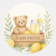 Seal your baby shower invitations with a fresh touch of charm! This round envelope sticker features a watercolor teddy bear in a wooden crate, a mason jar of lemonade, and vibrant lemons hanging from a leafy branch — the perfect accent to your lemon-themed baby shower suite. Great for invitations, party favors, or baby shower thank-you notes.