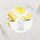 These round lemon baby shower invitations feature a top boarder watercolor lemons in shades of yellow. The words Lemon Drop is set in a trendy hand lettered calligraphy style typography. Order printed cards, printable invitations or a downloadable evite. A charming choice for summer baby showers. For more gender neutral baby shower invitations visit www.zazzle.com/dotellabelle
