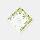 This is a bright and summery baby shower paper napkin. The design shows an arch of lemon tree branches, their white flowers, green leaves and sweet fluttering butterflies. This would be perfect for any sweet lemon themed baby shower.