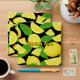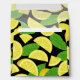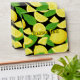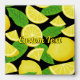 Lemon slices and leaves. Seamless pattern. Custom background color. Custom text.