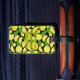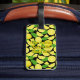 Lemon slices and leaves. Seamless pattern. Custom background color. Custom text on each side.
