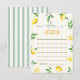 Collect "zesty" advice and sweet wishes for the future with these lemon time capsule cards. Decorated with delicate watercolor blossoms and citrus vines, they invite guests to write special notes for the birthday child. This meaningful activity is a beautiful way to create a time-honored treasure for your "Little Cutie" to open years from now.