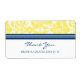 Elegant Wedding thank you labels in stylish bright lemon yellow, dark navy blue and white vintage damask floral pattern, the perfect addition to your wedding, available in many matching wedding products. Perfect for wedding favors or as wedding wine bottle labels.