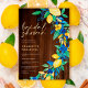Lemon blue floral wood script bridal shower foil invitation