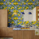 Lemon Blue French Country Watercolor Tile Wallpaper