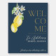 Complete the look for your mani squeeze bridal shower theme with this welcome sign. Featuring a minimalist lemon, flower and leaves bunch along with the word welcome in chic typography in golden color