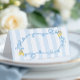 Add a charming detail to your table setting with this elegant place card featuring watercolor lemons, soft blue bows, and classic blue and white stripes. Perfect for seating arrangements, food labels, or favor tables at a Mediterranean-inspired baby shower.