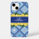 Lemon Blue Tile Backsplash Monogram Case-Mate iPhone Case