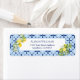 Elegant bright blue greenery blue script address return label featuring lemon design and blue tile.