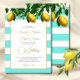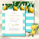 Lemon Botanical Blue White Stripe Wedding Invitation
