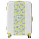 The luggage itself is awesome. So much utility for a carry-on bag. Lots of zippered pouch compartments to keep everything from getting everywhere. And it has a TSA approved lock and a dust cover! Love it. The printing is terrific. Love the way it wraps around the top and bottom. So happy the bumpers, wheels and handle color matches the design perfectly. She's gorgeous.
