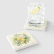 Stone coaster with a lovely illustration of a bouquet of lemons surrounded by white blossoms leaves and sprigs.