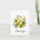Thank you card with a lovely illustration of a bouquet of lemons surrounded by white blossoms leaves and sprigs.