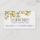 Pretty sketch or watercolor style leafy lemon branches on a business card, perfect for a home bakery, personal chef, catering or other cooking or culinary business.