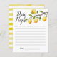 Rustic citrus theme bridal / wedding shower date night advice cards featuring watercolor illustration of lemons on a tree branch. Ask the guests to fill out this card during the shower. It will be a great keepsake! Perfect for a summer shower.