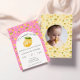 Plain white envelopes are included with paper invitations and will come to fit the invitation size you select. If you don’t need the envelopes, you may choose to not receive them by selecting the dropdown below "Envelopes" and choosing "None." If you’d like to have a design on your envelopes, you can browse all of these available envelopes to find the design that complements your Lemon Citrus 1st Birthday Photo Invitation.