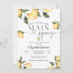 Celebrate love and friendship with this elegant lemon-themed bridal shower invitation. Featuring vibrant citrus illustrations and lush green leaves, this design brings a fresh and cheerful touch to your special day. Perfect for summer gatherings, it combines stylish fonts with a playful "main squeeze- phrase to set the tone for a joyful celebration. Customize with your event details to create a personalized keepsake that guests will adore.