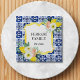 Show off your love for Italy with this stylish button! Featuring a lemon citrus design, navy blue Mediterranean tile pattern, and floral botanical details.