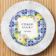 Brighten your space with this lemon citrus magnet! Featuring a navy blue Mediterranean tile pattern and floral bouquet